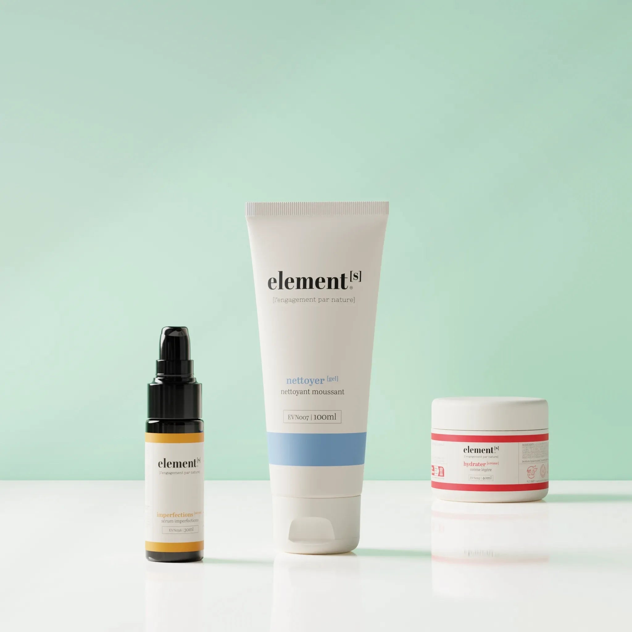 Pensée pour les peaux sujettes aux imperfections, cette routine agit en trois temps pour nettoyer, matifier le teint et purifier la peau sans la dessécher.