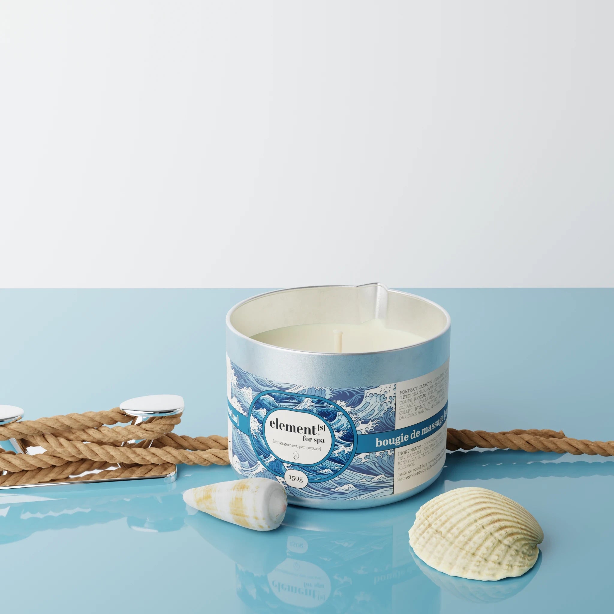 La cire de la bougie de massage element[s] est 100% d’origine naturelle. Sa fragrance vous transportera dans une bulle intemporelle où seuls le bien-être, le plaisir et le lâcher prise auront leur place.